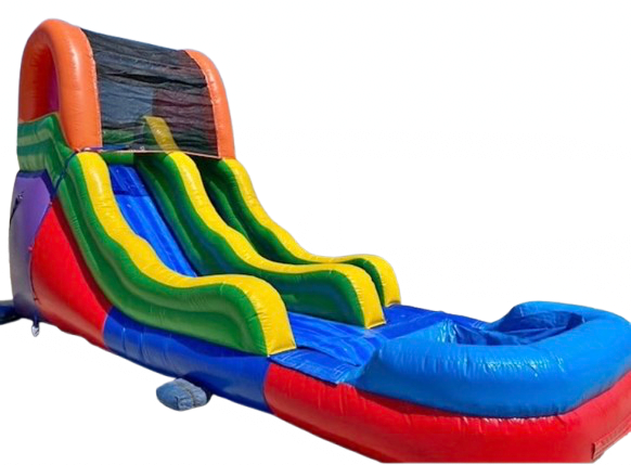 The 18 Ft single lane Slide - #6 (wet or dry) is a Heavy-Duty Commercial Grade Slide designed for birthday parties, events, and recreation centers. This 16-foot water slide features a single racing lane and a pool landing for big splashes. It's cleaned and sanitized after every rental for safe, bright, worry-free play. ๐ฆ๐งผ