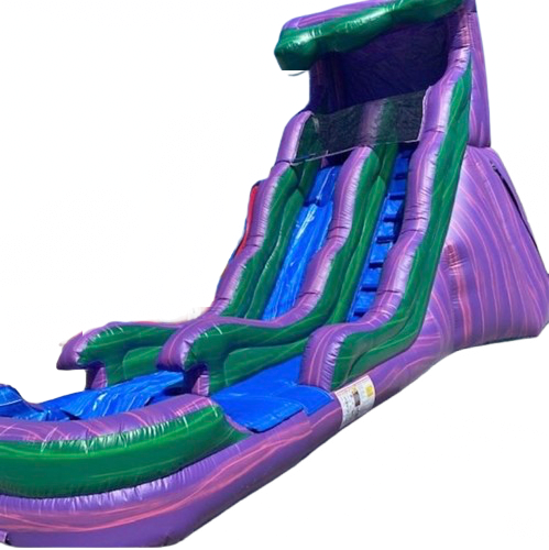 The 18 Ft single lane Slide - #6 (wet ) is a Heavy-Duty Commercial Grade Slide designed for birthday parties, events, and recreation centers. This 18-foot water slide features a single racing lane and a pool landing for big splashes or a dry run. It's cleaned and sanitized after every rental for safe, bright, worry-free play. ๐ฆ๐งผ